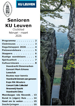 Recente berichtenOver onze seniorenclubGoed om te wetenWat je altijd wou vragen over onze club☛Jullie club zoekt vrijwilligers☚Citytrip Dresden oktober 2025Poëzie van Anke De VrijKU Leuven 600 jaarKalender KU Leuven 600 jaarKU Leuven stories en GezondheidszorgErfgoedcollectie KU Leuven Wil je meer weten over onze club?Fotoarchief activiteitenVideo's activiteitenArchief artikelsEnkel voor clubleden met login Helppagina?Word actief in onze clubOnze culturele activiteitenOnze sportactiviteitenGezellig samenzijnDaguitstappen en citytripParkeren GHB voor ex-UZL-werknemersBekijk hier de diamontage van 20 jaar clubactiviteiten.20 jaar clubactiviteiten in het clubblad van maart 2021De albums zijn enkel te bekijken na inloggenFoto albums 2026Foto albums 2025Foto albums 2024Foto albums 2023Foto albums 2022Bezoek Lam Gods (Guido Kestens)'Pensioen in zicht' (Jan Flamaing)Van ziekenhuissite naar...(Jan Flamaing)Bezoek Abdij van Park (Guido Kestens)Verviers en omgeving (Guido Kestens)'200 jaar Kruidtuin' (Guido Kestens)Bijscholingen (*)Info voor senioren UZ en KU Leuven (*)Over voeding (*)Jaarvergadering januari 2020 (*)Info vrijwilligers (*)Statuten, huishoudelijk reglement (*)Samenaankoop (*)SpiritualiteitBib. LeesclubSociale informatieArchief cultuurArchief uitstappenArtikels over KU en UZ LeuvenSamenaankoop Recente fotoreportages (enkel te bekijken na inloggen)